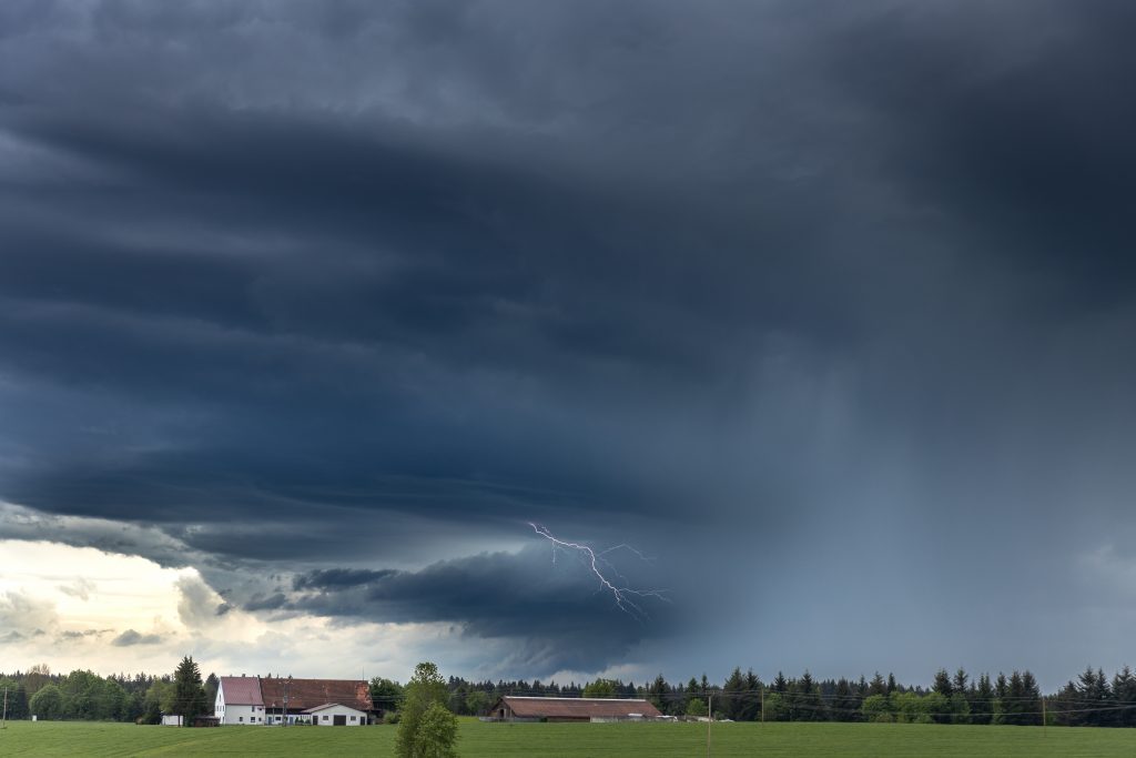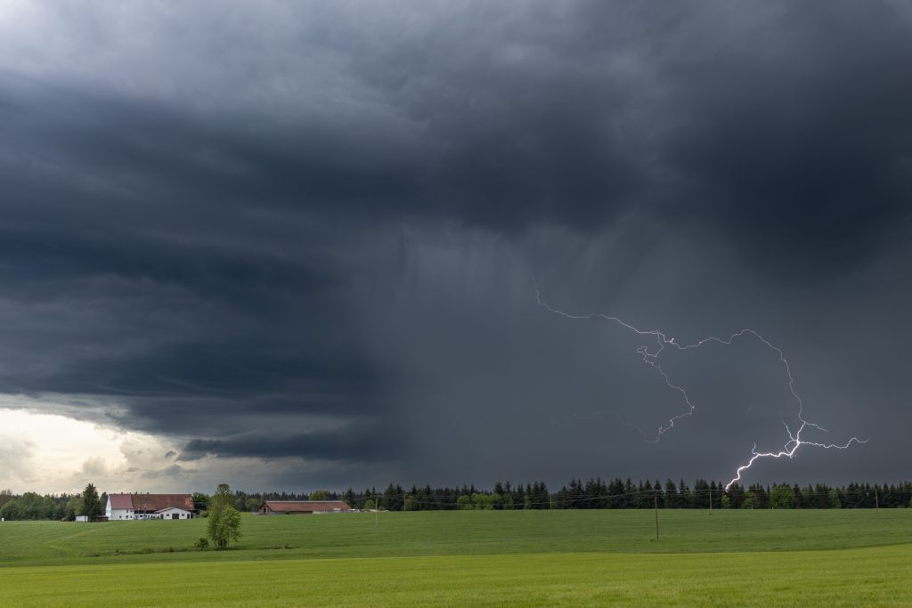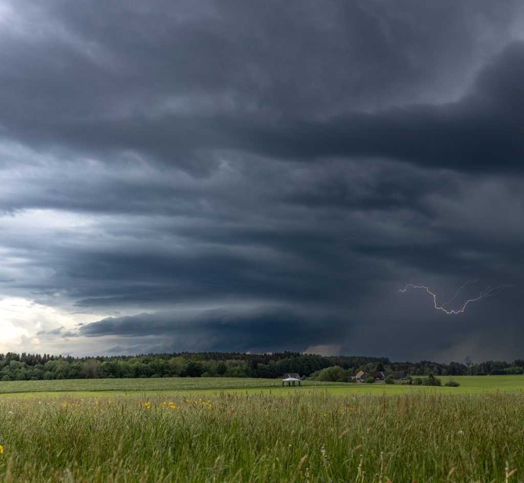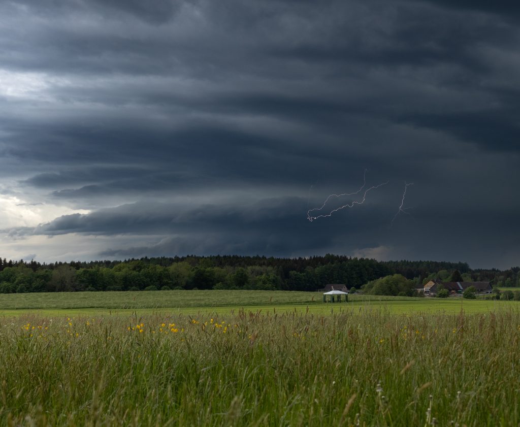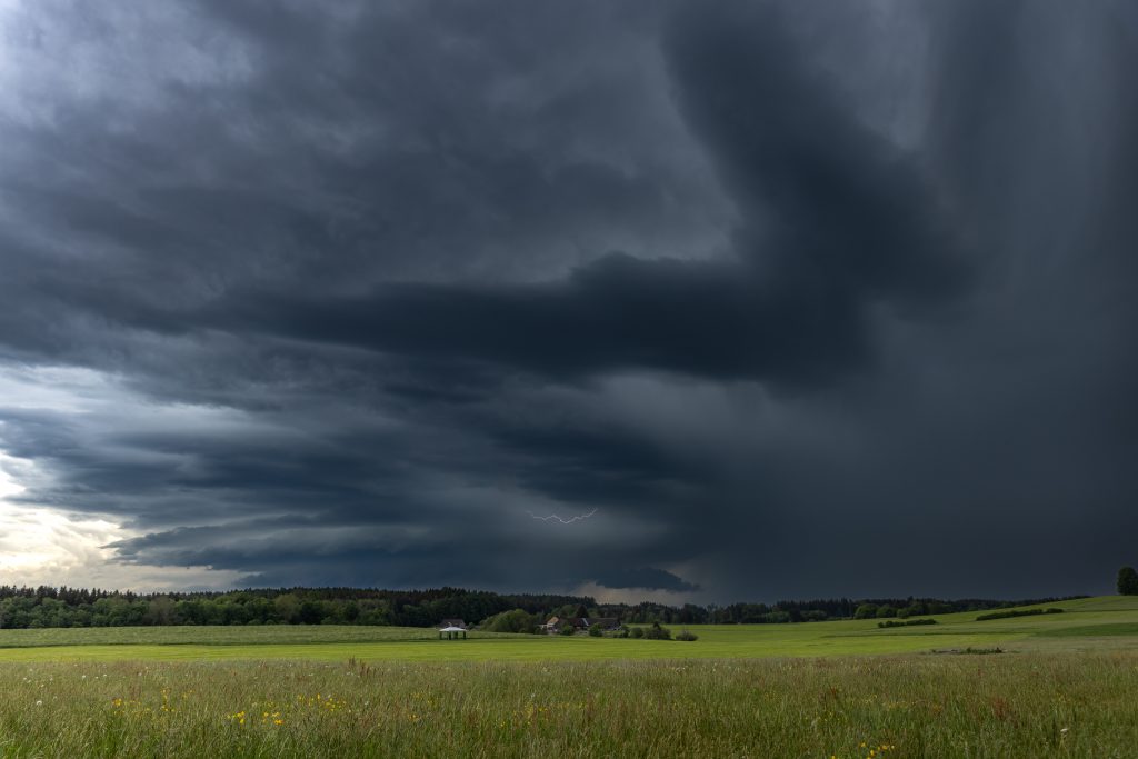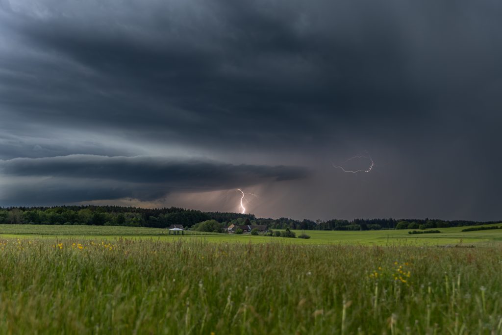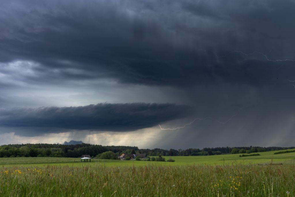 Von Leutkirch im Allgäu aus konnte ich eine fast ortsfeste Mesozyklone beobachten. Ich stand genau an der Grenze von Inflow und FFD und hatte so tolle Sicht auf den Aufwind und schöne Entladungen im Niederschlag. Einzelne Blitze zuckten auch direkt aus dem Aufwind.