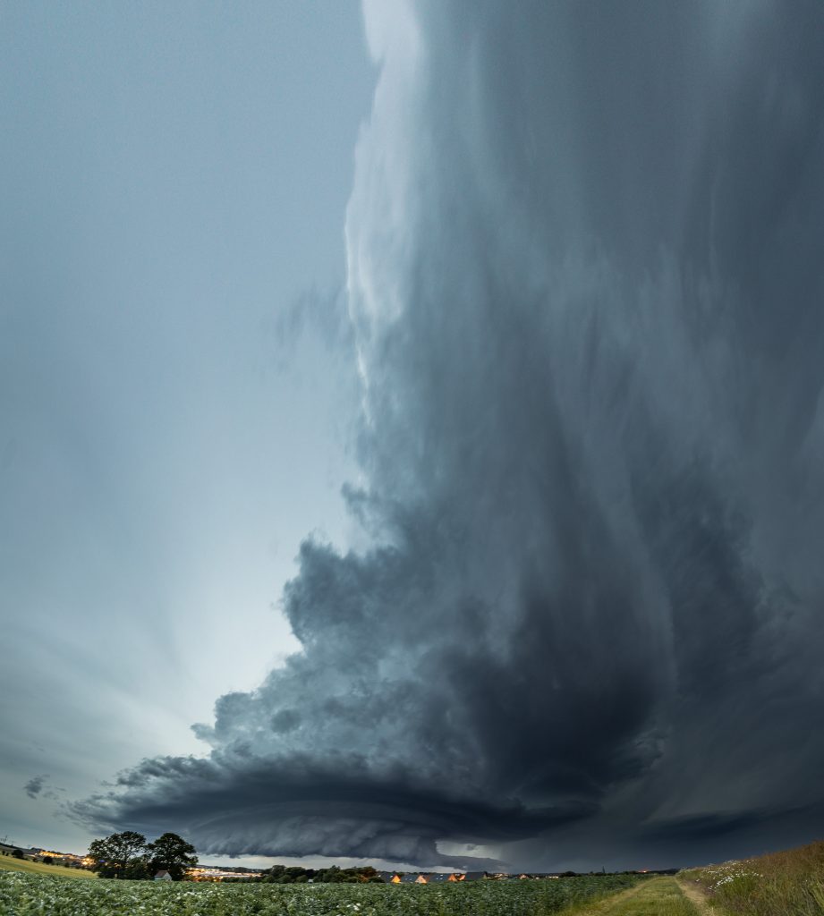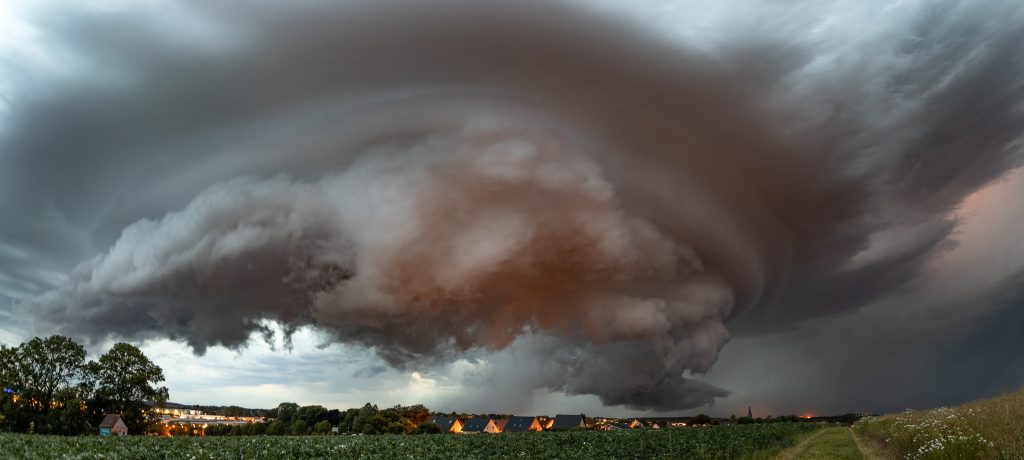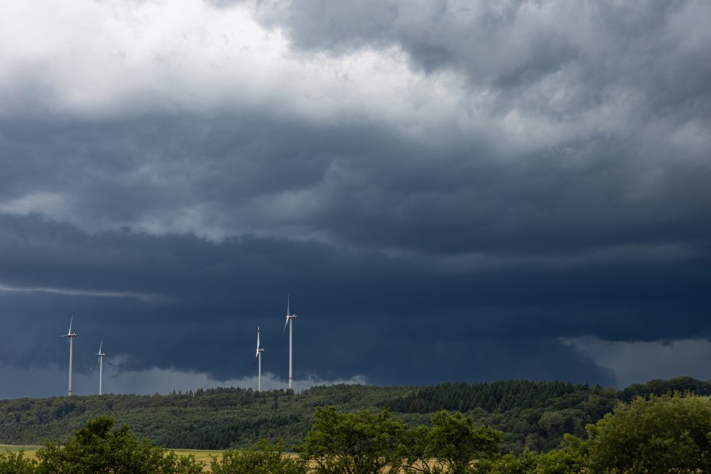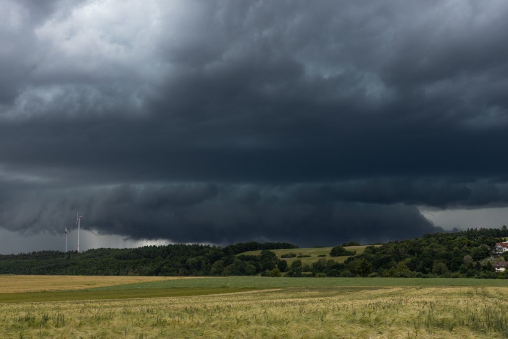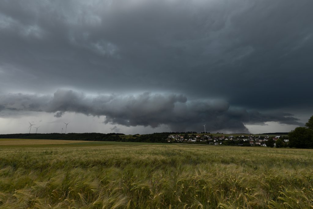 Am 18. Juni stand eine sehr potente Unwetterlage in der breiten Mitte Deutschlands an. Von Süden wurde zum ersten Mal diesen Sommer Luftmassen mit Taupunkten über 18 Grad Richtung Norden geführt und gleichzeitig strömte von Nordwesten kühlere Luft ein. An der Luftmassegrenze sollten nach Modellberechnungen in einem sehr gut gescherten Umfeld in mehreren Staffeln ab den Nachmittagsstunden kräftige Gewittersegmente und Superzellen entstehen und gen Osten/Nordosten ziehen. Auch die Energiewerte waren mit ca. 1500J/kg durchaus passabel. Um halb 12 ging es für mich los über die A7 über Würzburg/ Fulda in Richtung Kassel. Während der Fahrt kam von Frankreich ein erster Gewittercluster über das Rhein/Main Gebiet Richtung Kassel gezogen. Bis dato war die Entwicklung, welche an der Warmfront auf der Südseite der Luftmassengrenze entlang zog, nicht sehr eindrucksvoll. Erste Erinnerungen vom Totalfail meines Level 3 Chases am 22.06.2024 wurden wach. Zwischen Fulda und Kassel bemerkte ich dann eine deutliche Verstärkung des Südteils und erkannte erste Böenfrontansätze im Westen. Um ideal zur Zugbahn verlagern zu können bog ich bei Bad Hersfeld ab auf die A4 in Richtung Eisenach. Es war zu Erwarten, dass diese Zelle sich in dem nun gut gescherten Umfeld zu einer Superzelle entwickeln wird. An meinem ersten Halt etwas nordöstlich von Bad Hersfeld hatte ich dann diese Zelle vor mir, welche deutlich begann nicht mehr mit der Höhenströmung mitzuwandern, sondern verlangsamte sich etwas und scherte mehr in meine Richtung aus. Es kristallisierte sich ein schöner Aufwind mit einer schicken Wallcloud darunter heraus.