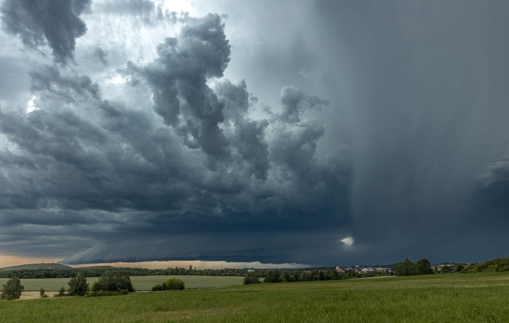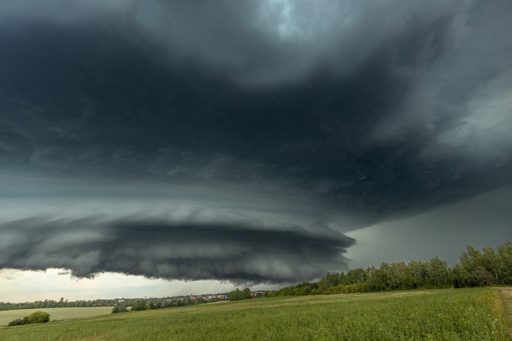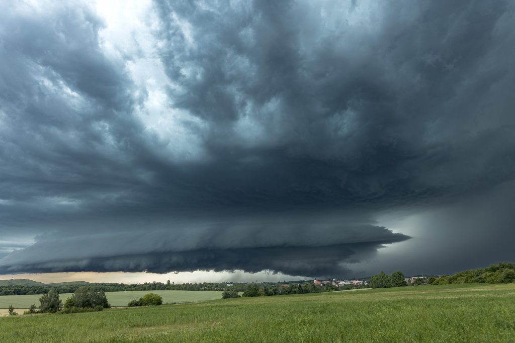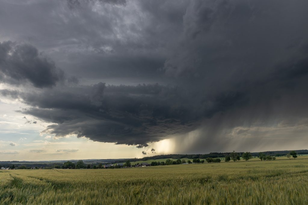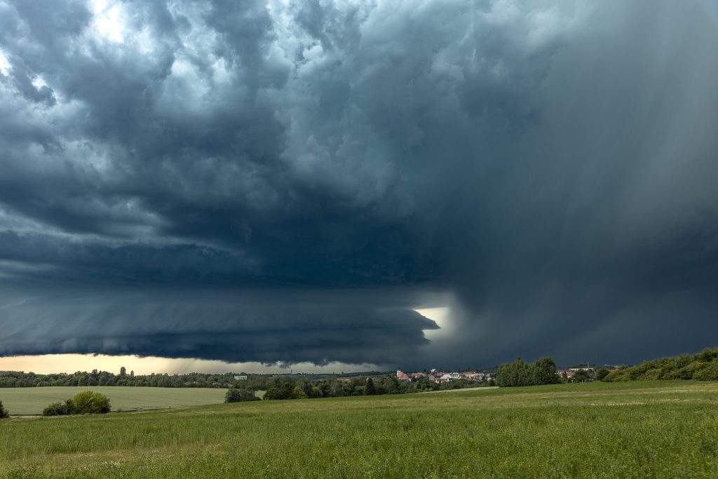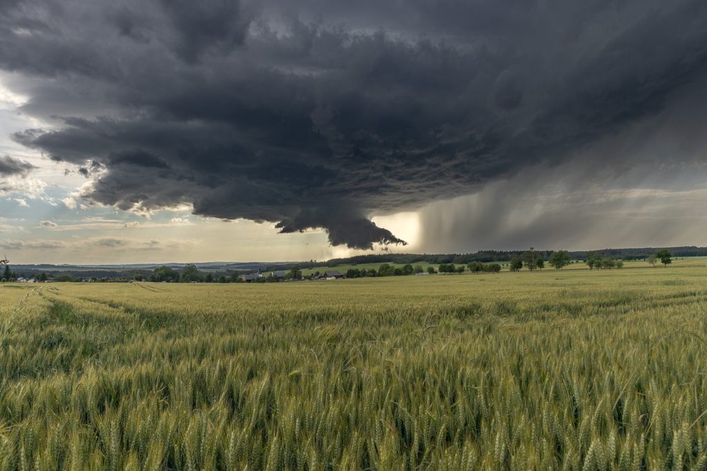 Nach diesen Aufnahmen ging es schnell weiter zurück auf die Autobahn und Richtung Osten. Beim Erreichen der Autobahn war die Böenfront schon über mir und man sah, wie der Niederschlagskern die hügeligen Wälder hinter mir bereits verschluckt hatte. Auf dem Weg nach Eisenach gab es vorweg überall Neuauslöse und es begann flächig zu regnen. Deshalb machte ich mir zu diesem Zeitpunkt keine Hoffnungen mehr, dass sich diese Zelle auf ihrem Weg in die Richtung der Neuauslöse noch weiter durchsetzen kann. Bis Erfurt stand ich dann wieder im Trockenen und hatte, wie fast schon zu erwarten, eine eher unstrukturierte Linie, die am Auslaufen war. Bei meinen Teamkollegen die in Nordsachsen verteilt warteten und mir machte sich langsam Frustration breit, da es zu diesem Zeitpunkt wieder einmal nach einem Flopp unter vermeintlich gutem Setup aussah. Ganz zu schweigen von der langen Anfahrt, Spritgeld usw.. Genau in diesen Minuten entwickelte sich jedoch bei Bad Kissingen an der Rhön eher unscheinbar binnen weniger Minuten eine starke Superzelle, welche munter Richtung Sachsen (Raum Plauen, Schleiz) losmarschierte. Auch ein deutlicher Hageltrack zog die Zelle. Da vorerst nicht von Abschwächung der Zelle auszugehen war, fuhr ich im Eiltempo über Jena in Richtung Schleiz. Knapp nördlich bog ich ab in Richtung Plauen und fand einen guten exponierten Standort, von wo aus ich die Superzelle schön auf mich zukreiseln lassen konnte. Die Charakteristika deuteten ganz klar auf eine LP- Superzelle hin.