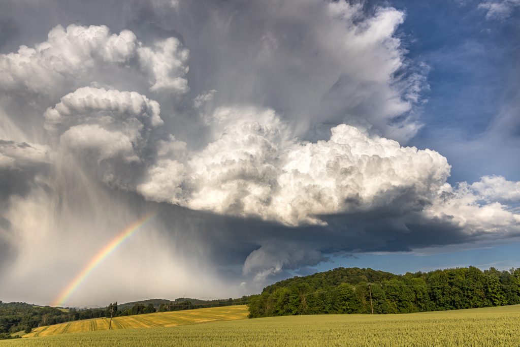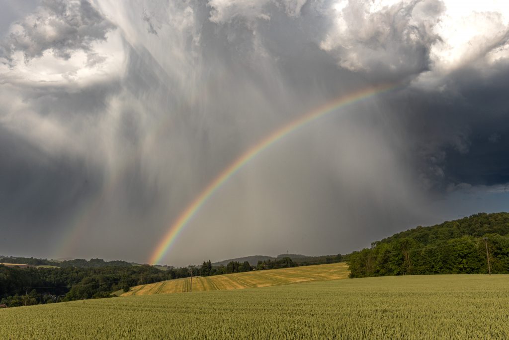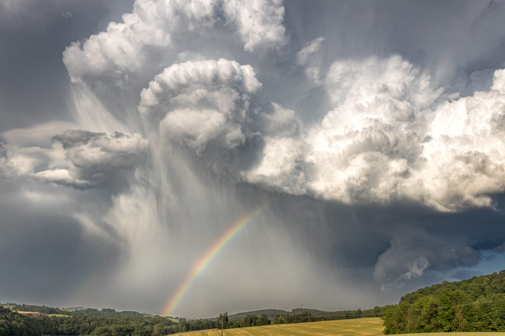Nachdem die Zelle über mich gezogen war, positionierte ich mich auf einer Anhöhe, um die traumhaft schöne Rückseite der Zelle zu dokumentieren. So klar und freistehend hat man das auch nicht alle Tage. Dazu noch der tolle Regenbogen im Niederschlagskern. Einfach nur WOW!