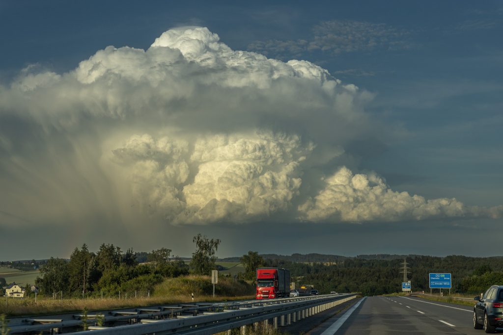 Beim Versuch mich vor der Zelle zu halten musste ich über Plauen zurück auf die Autobahn Richtung Stollberg/Chemnitz. Leider musste ich durch die Innenstadt fahren und verlor dadurch viel Zeit. Auf der Autobahn kam ich kurzzeitig in den Hagelkern und fuhr die nächste Ausfahrt schnell wieder ab Richtung Osten. Dort konnte ich nochmals kurz ein paar Aufnahmen unter dem Aufwind machen, bevor ich mich südwestlich von Stollberg überrollen lies.