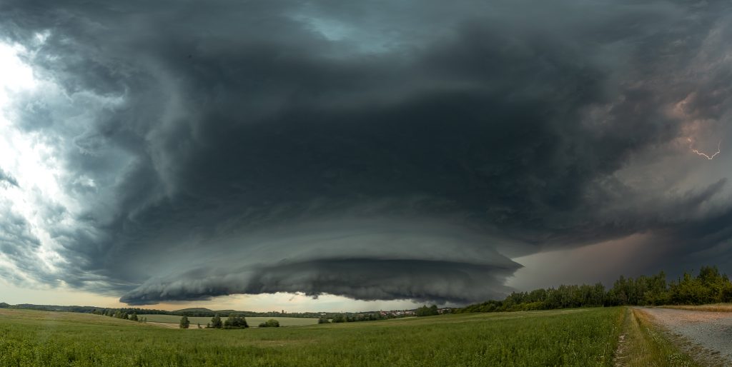 Während die Zelle abzog verabredete ich mich mit einem Teil des Teams für einen kurzen Plausch in Stollberg. Dort bemerkten wir, dass sich explosionsartig neue Entwicklungen im Norden vom Thüringer Wald gebildet haben. Speziell der südliche Teil scherte dabei sofort Richtung Osten aus und nahm eine Zugbahn über Jena Richtung Gera ein. Jetzt musste es schnell gehen. Wir brachen unseren kurzen Stopp schnell ab und fuhren in Richtung Gera. Die Radarsignaturen der Zelle wurden immer beeindruckender und in der Ferne wurden erste Strukturen sichtbar. Was sich in der nächsten Stunde dann passierte, wird wohl allen noch lange in Erinnerung bleiben.
