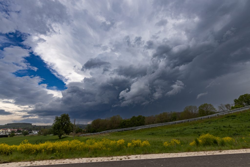 Auf der Alb konnte ich dann noch für ein paar Minuten die Reste des Aufwindes und den bereits deutlich schwächer werdenen Niederschlagsbereich beobachten. Zwei tolle Erdblitze schlugen ebenfalls vor mir ein (Leider kein Bild davon).
