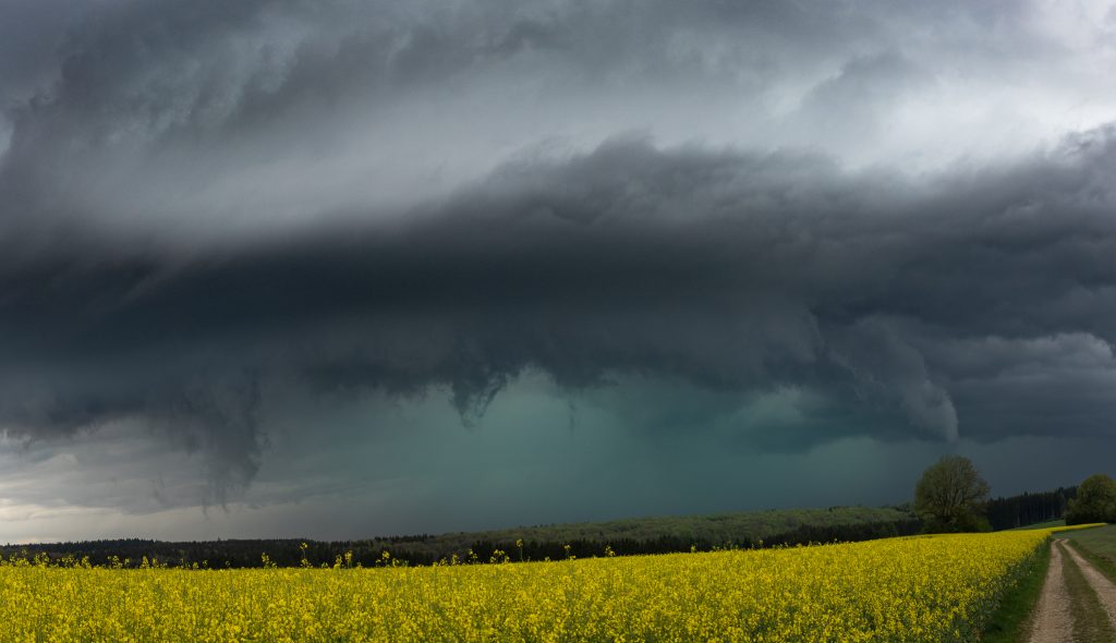 Am 2. Mai kam zum ersten Mal dieses Jahr in den Südwesten und Westen bis nach Bayern eine labile Luftmasse. So konnte sich bis zum Nachmittag gut Energie aufbauen. Einziger Nachteil war fehlende Dynamik. Es war von Sturzfluten durch ortsfeste Zellen mit viel kleinem Hagel und Starkregen auszugehen. Optisch war meine Erwartungshaltung gering, da durch fehlende Scherung und Höhenströmung kein hoher Organisationsgrad zu erwarten war. Eine Zelle die über der Ostalb bei Böhmenkirch explodierte erweckte meine Aufmerksamkeit und so fuhr ich über Schwäbisch Gmünd und Heubach auf die Alb. Am Albaufstieg fiel mir auf, wie tiefere Wolken als Art Inflowbänder in die Zelle gezogen wurden und die Zelle sogar geringe Organisation zu haben schien. Der optische Eindruck schien zu passen, denn das Radar sprach eine eindeutige Sprache. Ein kleiner aber sehr intensiver Kern mit Hagel bis 2,5cm ging gerade in der Nähe von Böhmenkirch nieder.