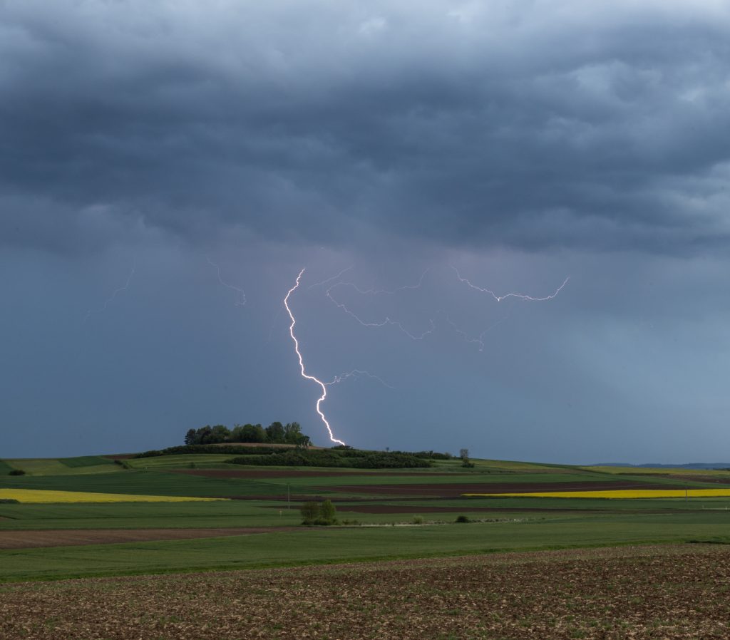 Beim Versuch mich durch das gewittrige Starkregengebiet Richtung Aalen durchzukämpfen musste ich fast aufgrund überschwemmter Straßen abbrechen, schaffte es jedoch noch über Ebnat ins Nördlinger Ries. Dort konnte ich bei Kirchheim dann den Komplex nordwestlich vorbeiziehen lassen und einige nette Entladungen festhalten.