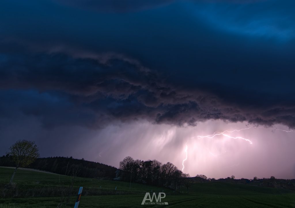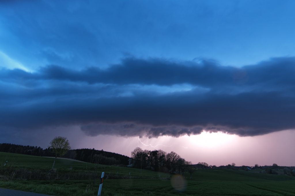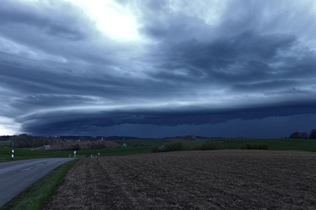 Gegen Abend sollte sich dann noch eine größere Linie von Oberschwaben aus bilden und über Bayern ziehen. Darum ging es zügig über Donaueschingen Richtung Augsburg. An der A8 war ich gerade noch rechtzeitig um Richtung Osten etwas Abstand zur Linie zu gewinnen und konnte bei Adelzhausen diese geniale Shelf beobachten und einige Erdblitze.