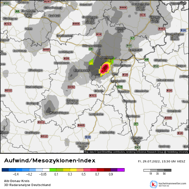 Fahrt nach Ulm. Aufwind ist schon klar vom Abwind getrennt.
