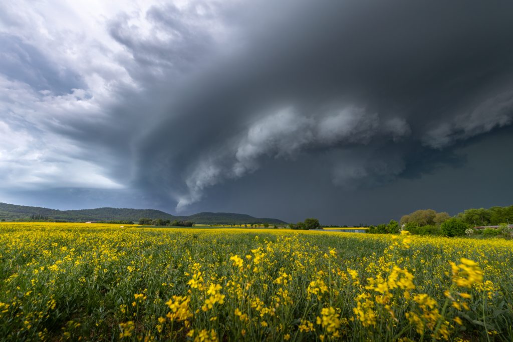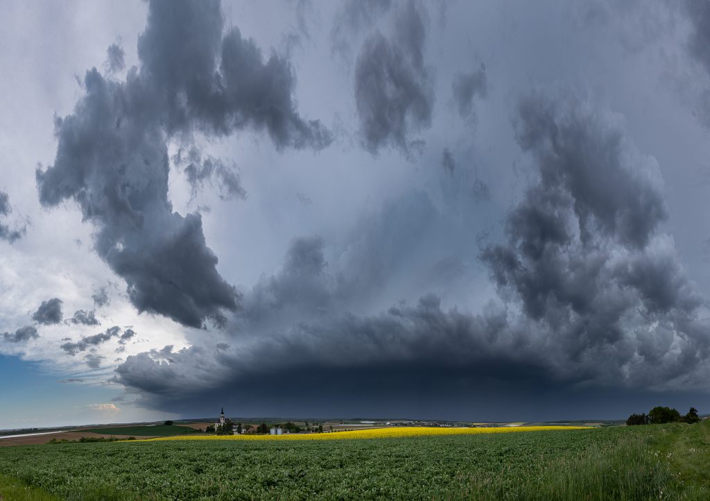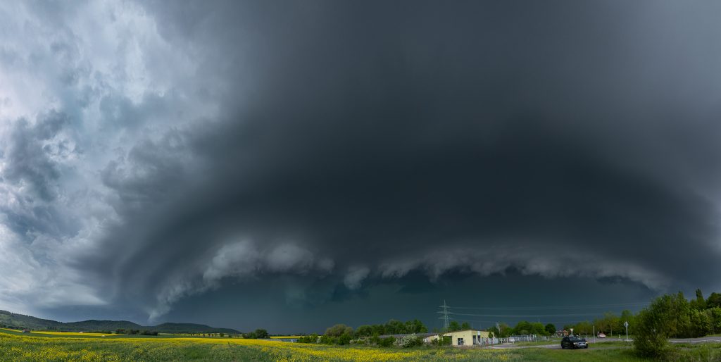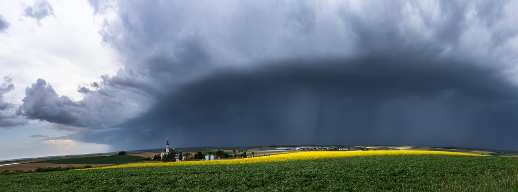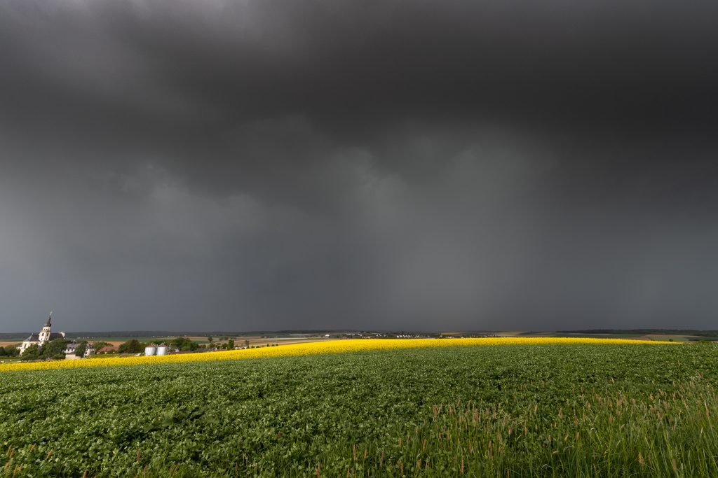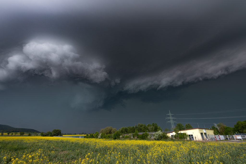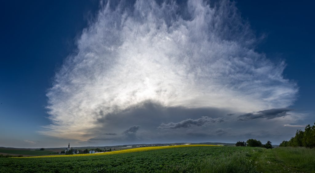 Nachdem ich für die markanteste Stelle in der Squallline nach Auswertung der Radarloops etwas zu südlich stand verlagerte ich nach Nordosten, wo ich bei Essleben auf einer Anhöhe dann gute Sicht auf die aufziehende Linie hatte .