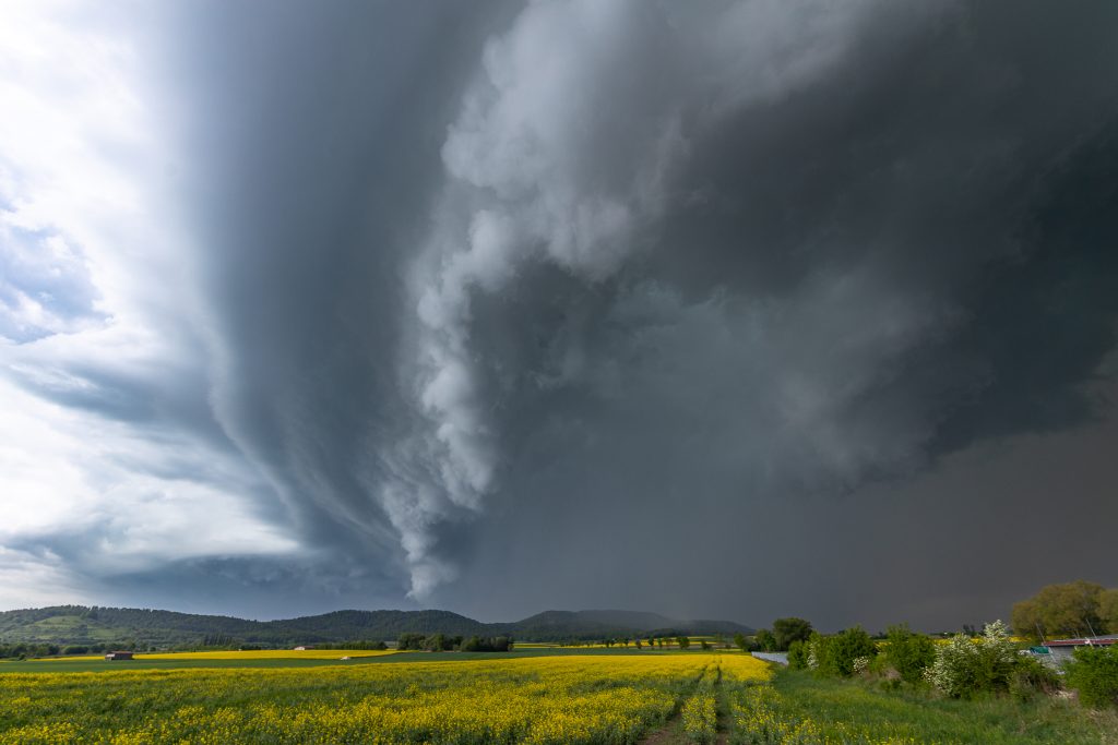 Der Aufzug war sehr beeindruckend, allerdings war an der Front kaum Struktur zu erkennen. Stattdessen ein diffuses Grau in dem man die starken Fallwinde des Niederschlags erahnen konnte. Außerdem kam die Front mit enormem Tempo näher.