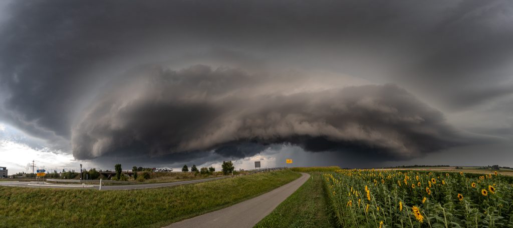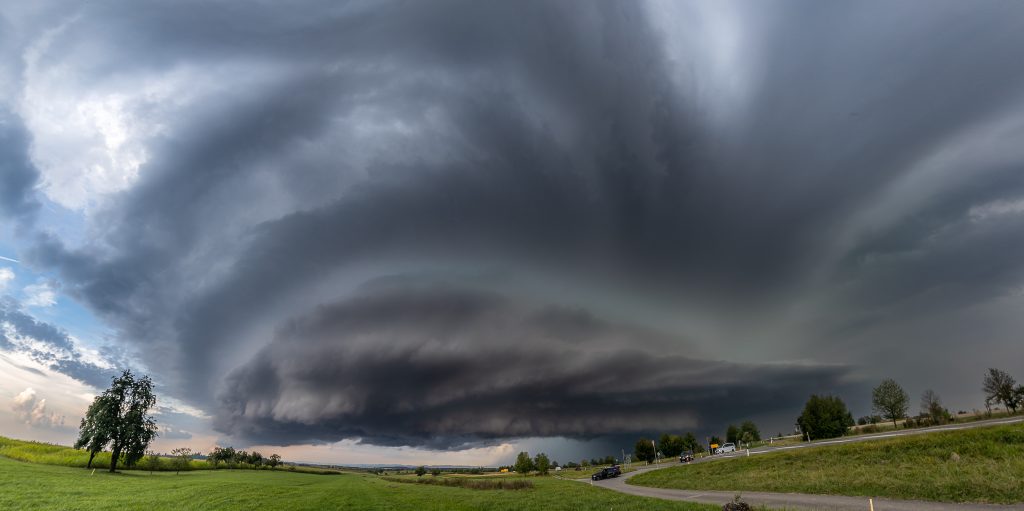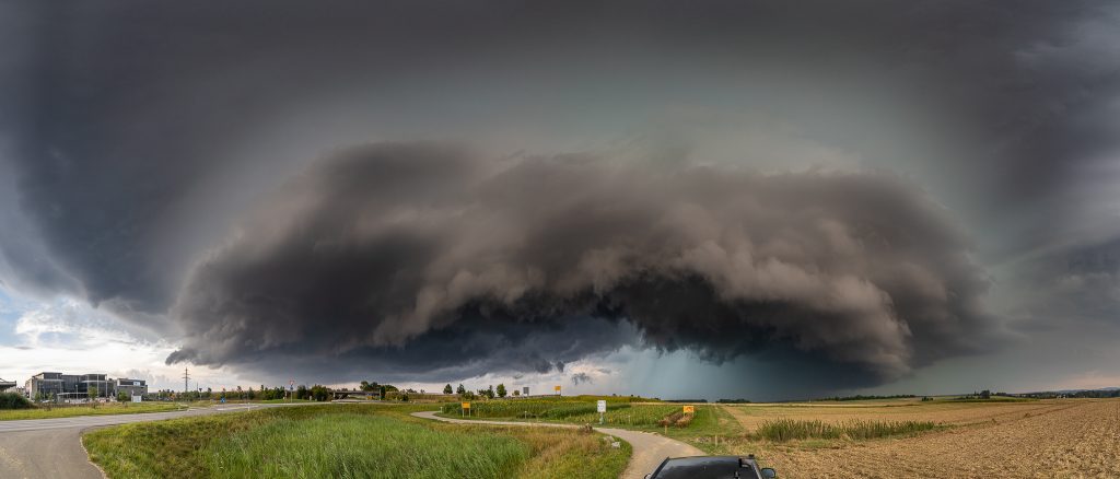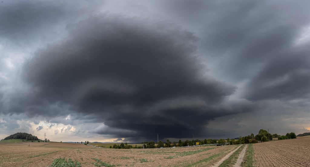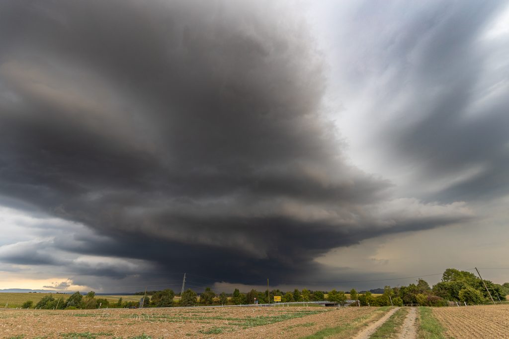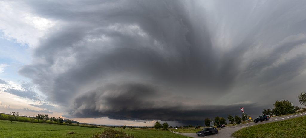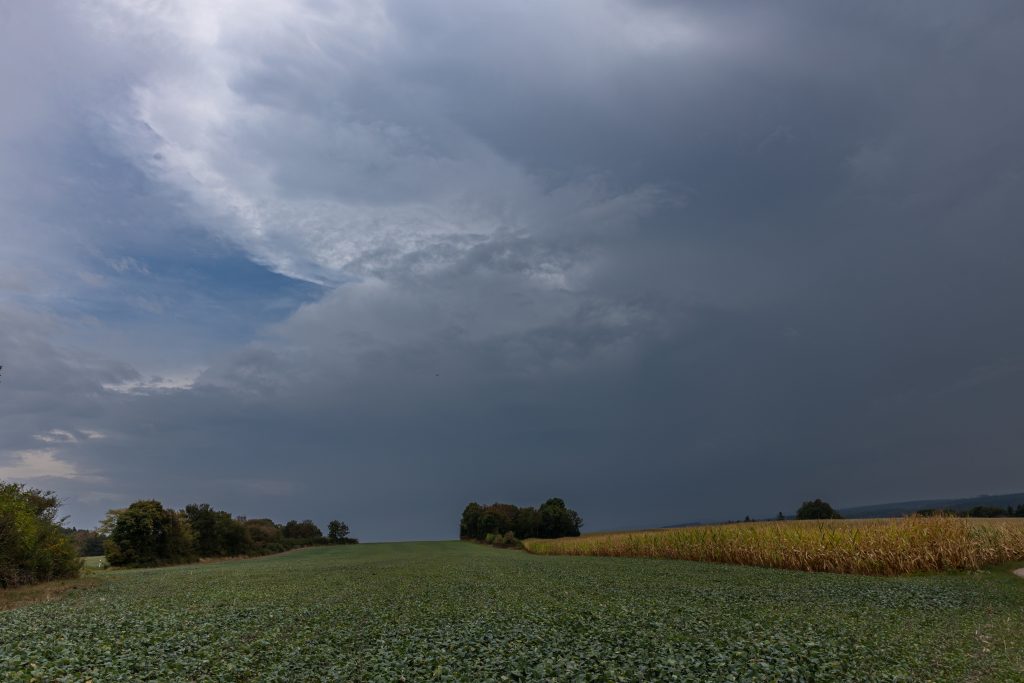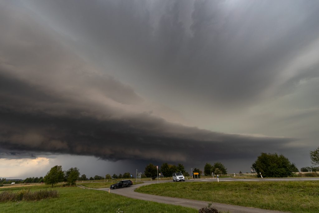 Das ich so einen Anblick im September nochmal erleben darf hätte ich bis wenige Stunden davor auch nicht für möglich gehalten. Aber man sieht eben immer wieder, dass im Umfeld der Alb die Scherungsbedingungen bei passender Anströmung für Zellen extrem günstig sind. Es war auch mit Abstand die Stärkste Zelle, welche an diesem Tag entstanden ist. Bei diesem Aufzug muss man auch trotz vorangeschrittener Jahreszeit mit Großhagel bis um 5cm rechnen. Daher hieß es schnell weiter und nach einem Unterstand suchen.