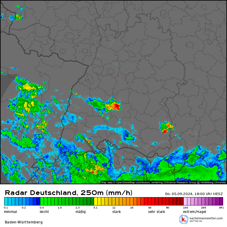 Am Nachmittag des 5. Septembers ging für mich ca. gegen 14:00 Uhr los in Richtung Freudenstadt/Ortenau, da in diesem Gebiet nach den neuesten Berechnungen mehrere diskrete Entwicklungen angedeutet wurden. Aufgrund der Gegenstromsituation sollte mit zusätzlicher Unterstützung der Orografie von Alb und Schwarzwald im oberen Neckar die ein oder andere organisierte Zelle möglich sein.