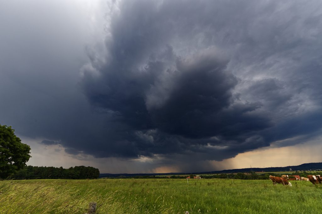 Also verlagerte ich etwas in Richtung Südwesten nach Tüngental bei Schwäbisch Hall. Dort gab es ein paar tolle Entladungen zu bestaunen, während sich das Gewitter abschwächte und ausregnete.