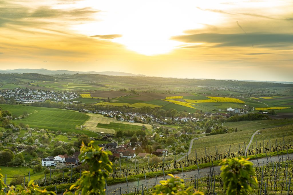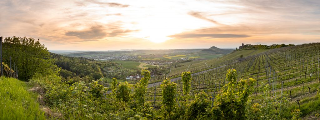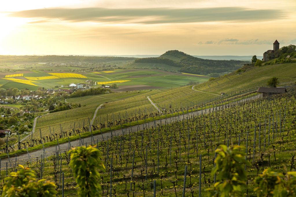 Bedingt durch die außergewöhnliche Wärme Anfang April mit zahlreichen Allzeit-Temperaturrekorden ist die Natur schon wesentlich fortgeschrittener wie um diese Zeit üblich. Der Raps steht schon in voller Blüte die Bäume Wiesen und Büsche werden grün und auch die Obstbäume stehen in voller Blüte bzw. sind zum Teil schon verblüht. Am Sonntagabend nutzte ich das frühsommerliche Wetter nochmals aus und konnte diese schöne abendliche Stimmung in den Weinbergen bei der Burg Lichtenberg nahe Oberstenfeld festhalten.