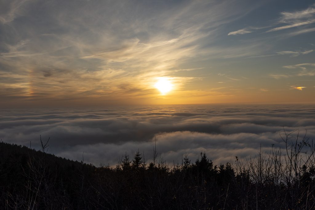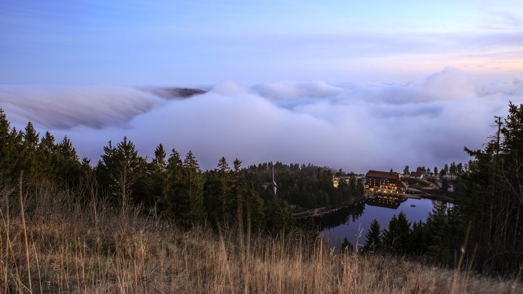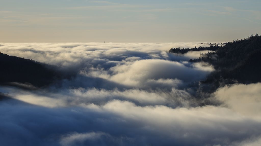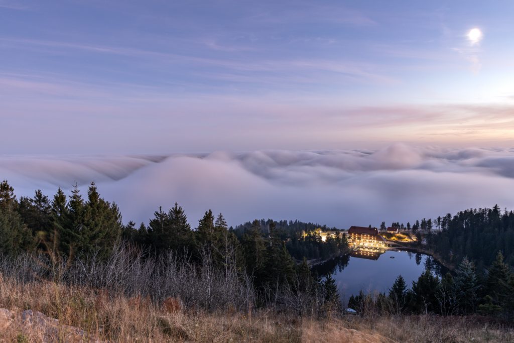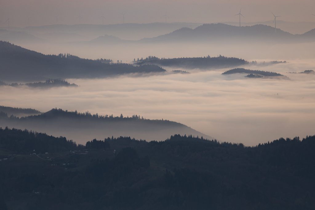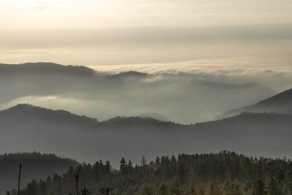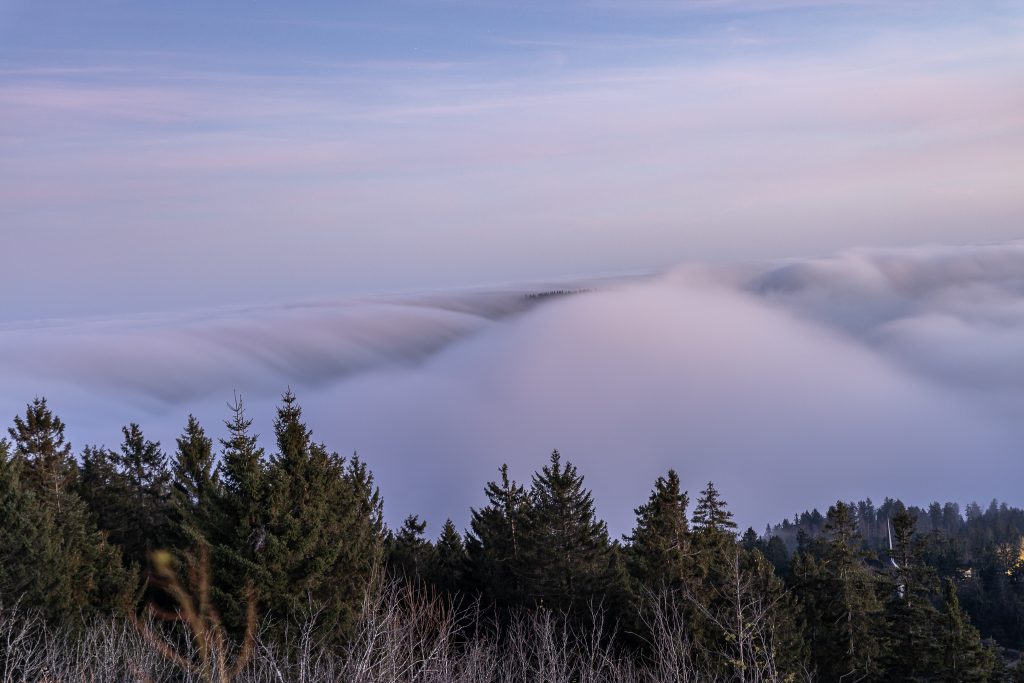 Beeindruckende stehende Nebelwelle am Massiv der Hornisgrinde.