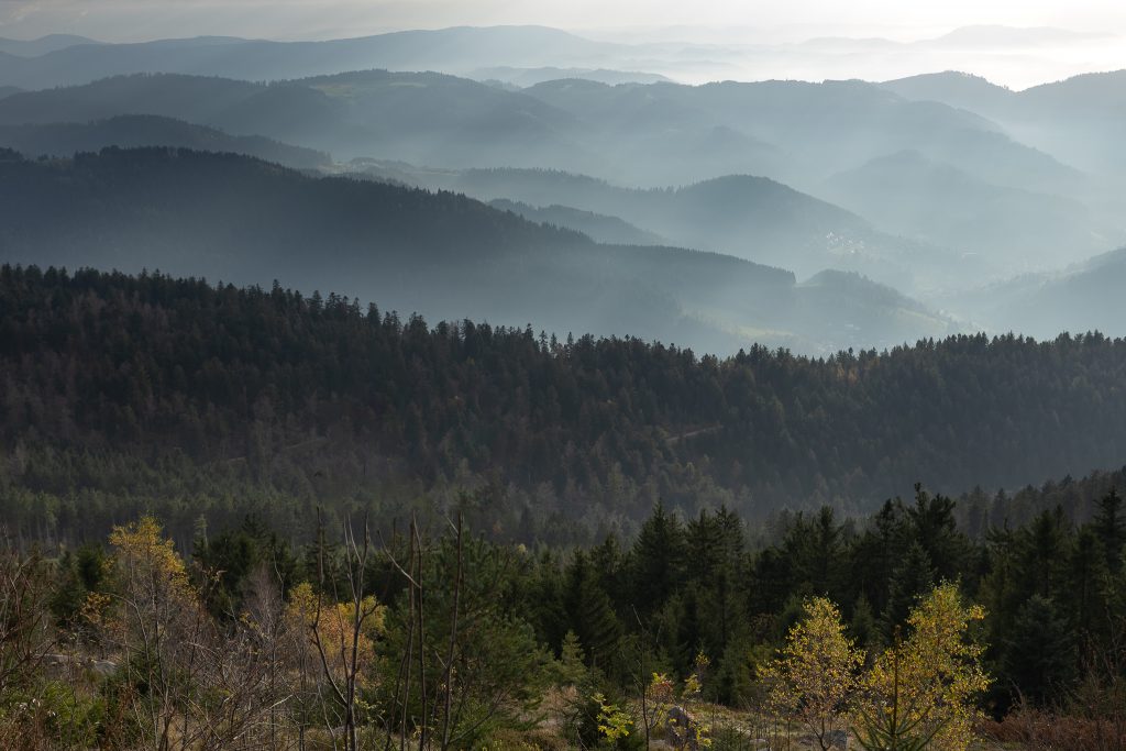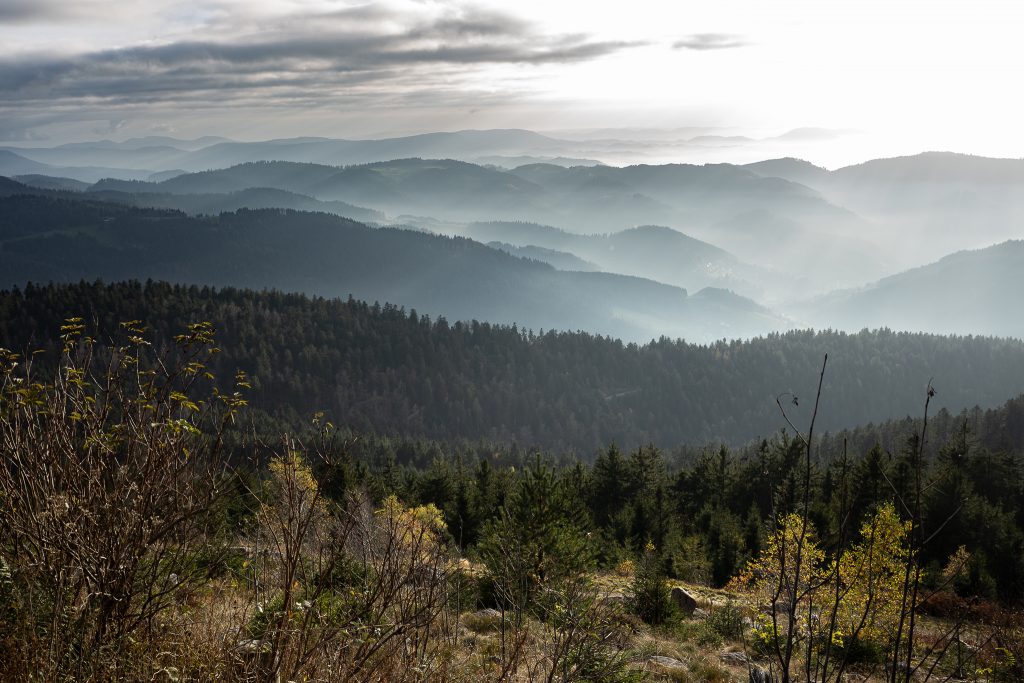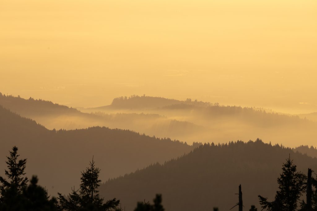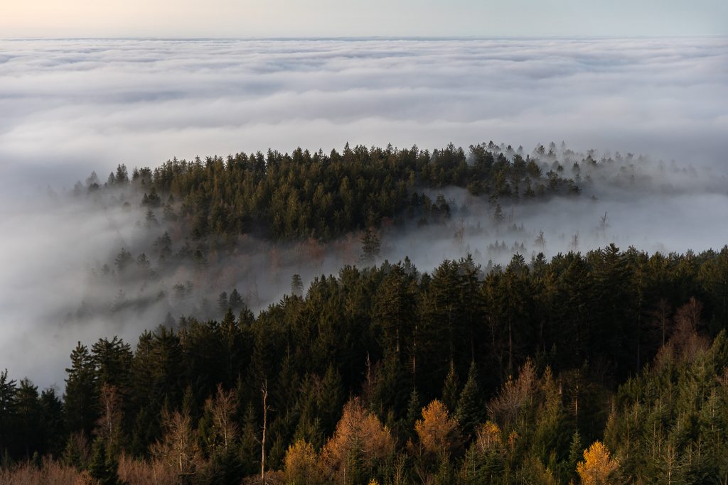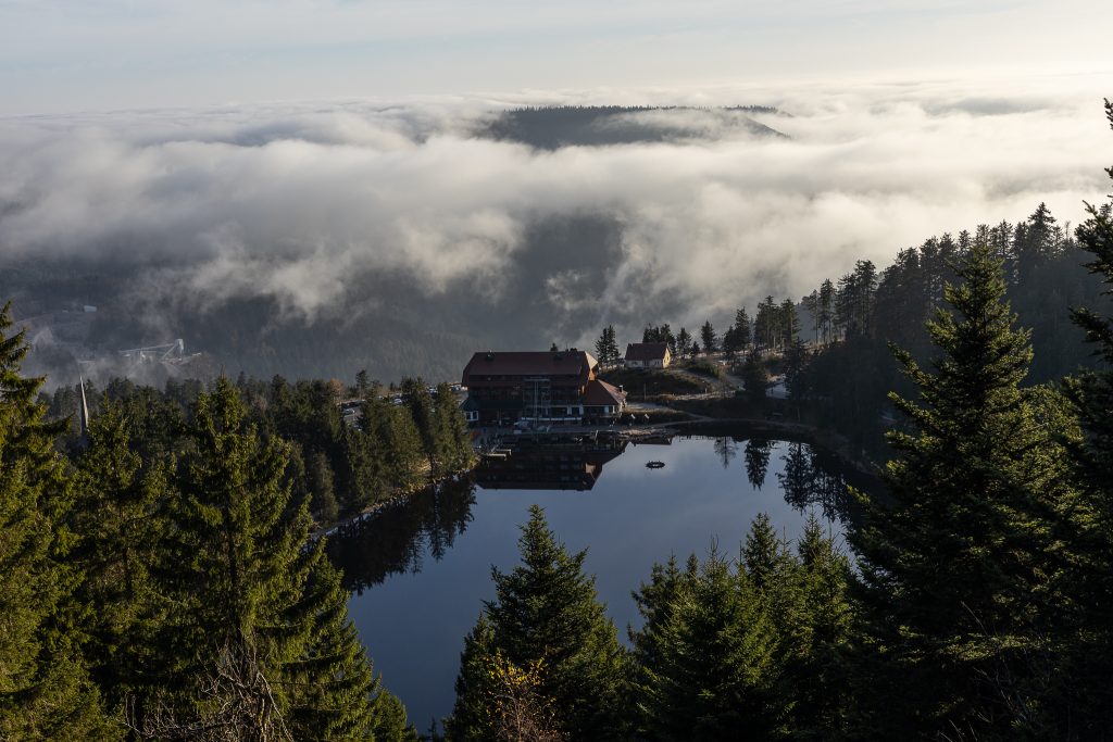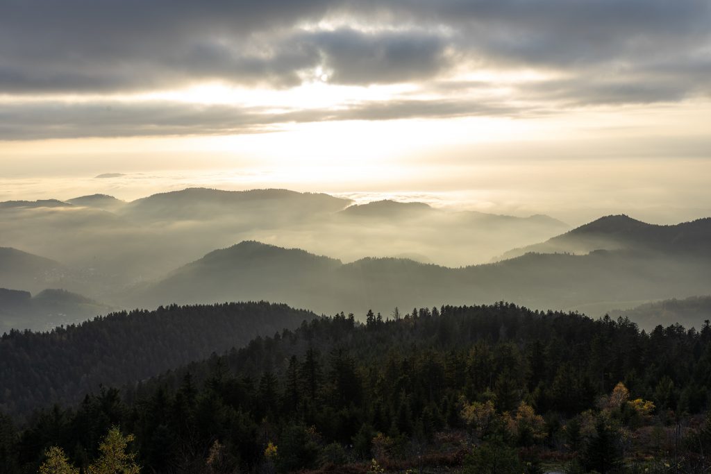 Beeindruckende stehende Nebelwelle am Massiv der Hornisgrinde.