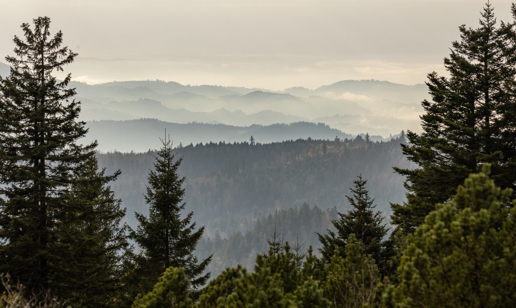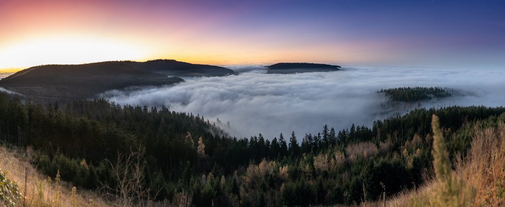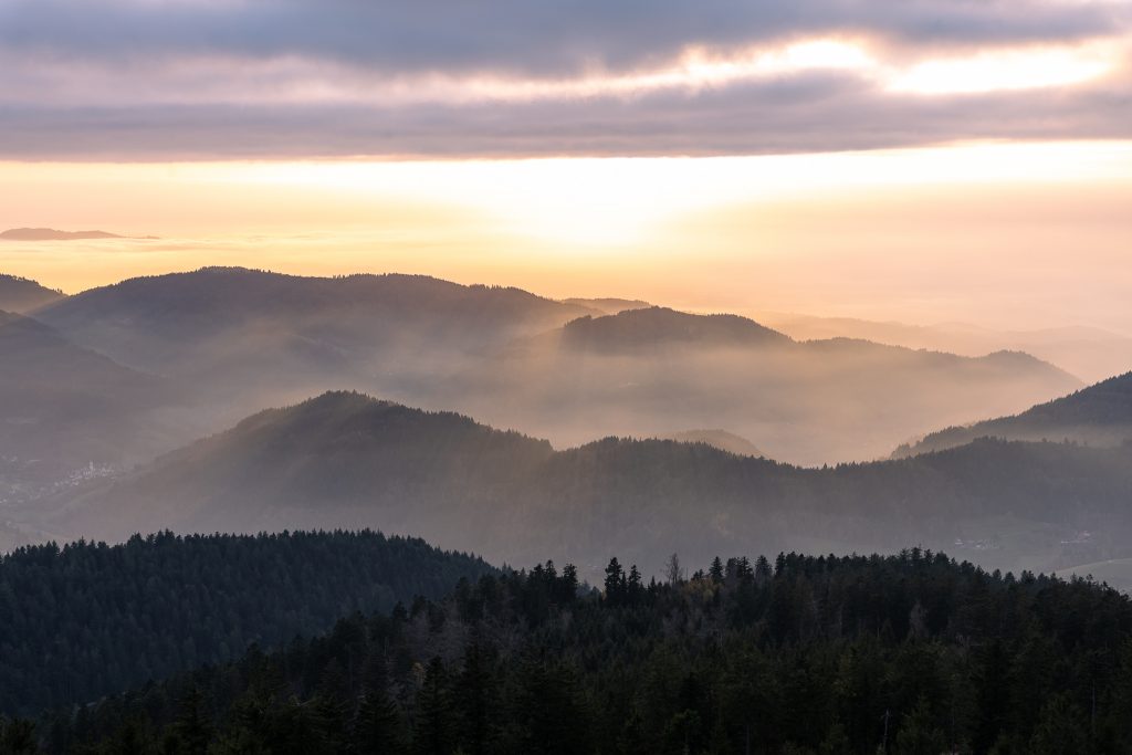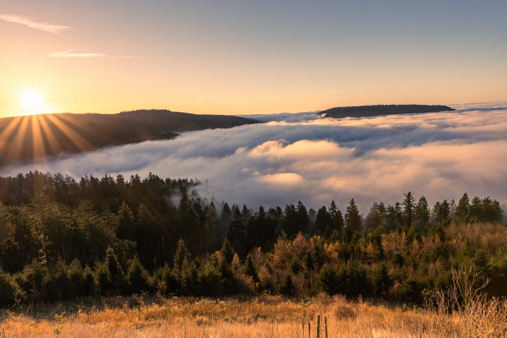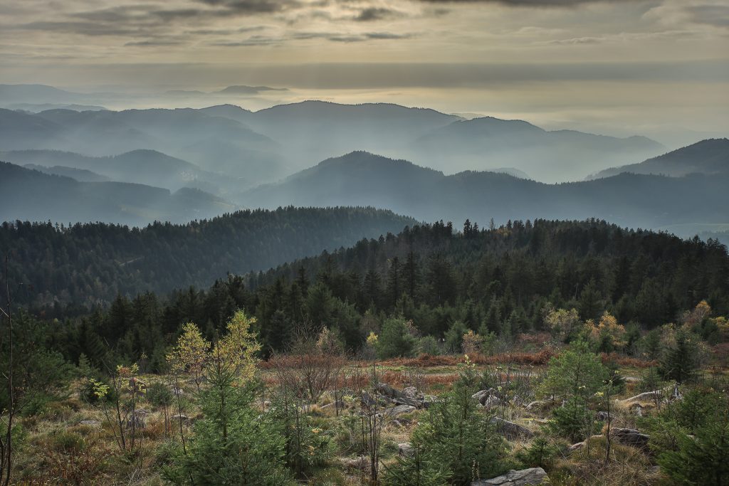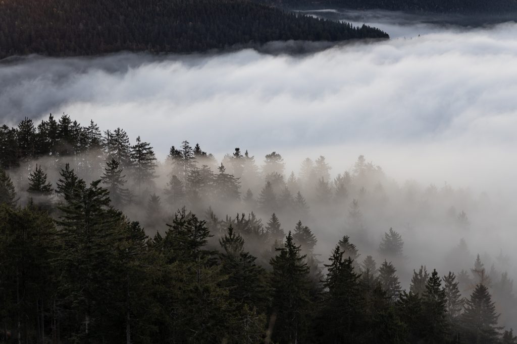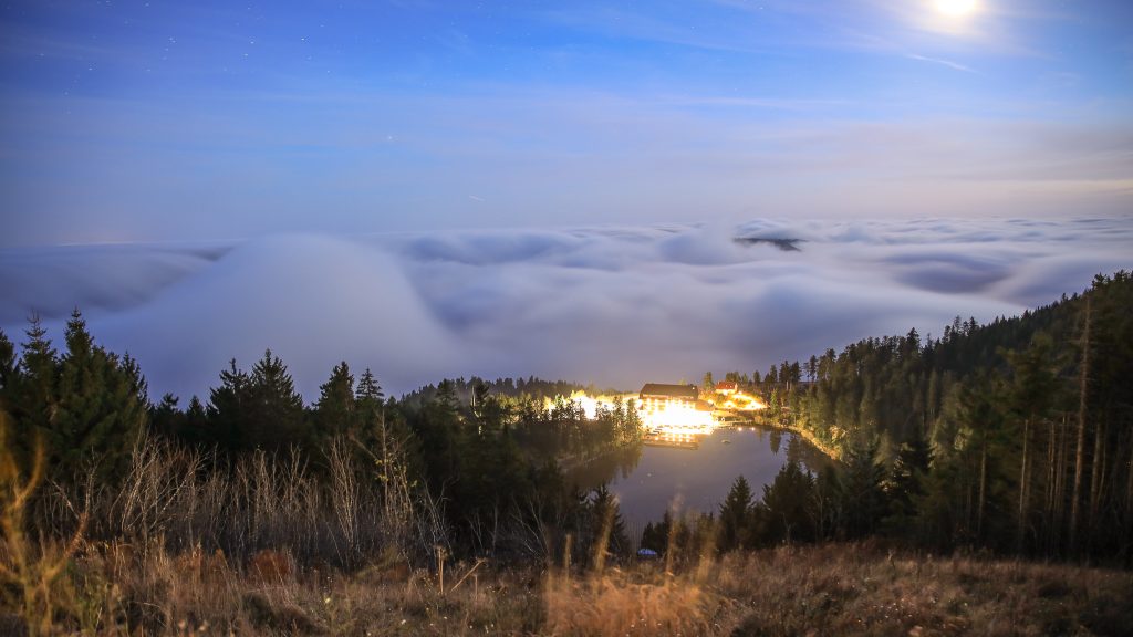 Beeindruckende stehende Nebelwelle am Massiv der Hornisgrinde.