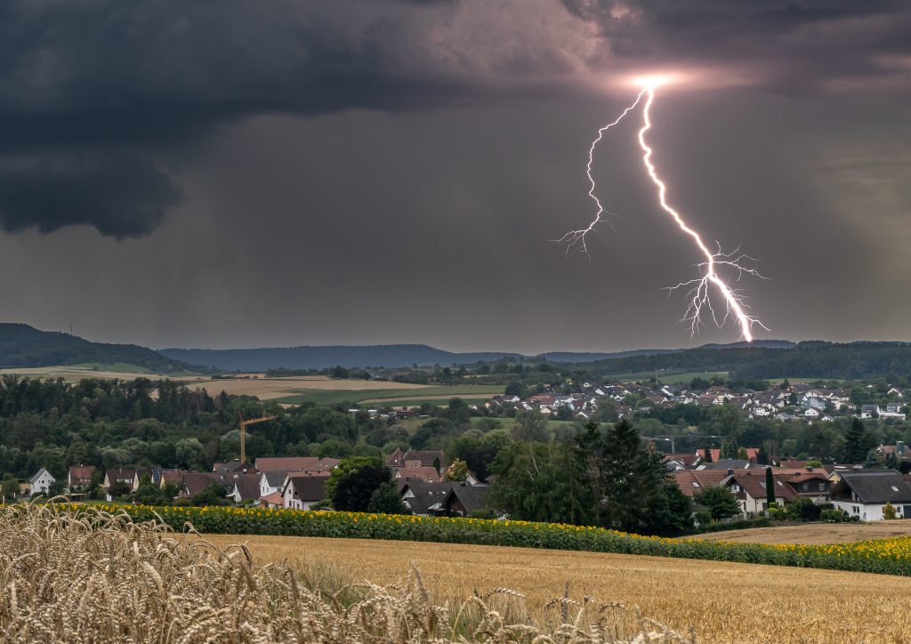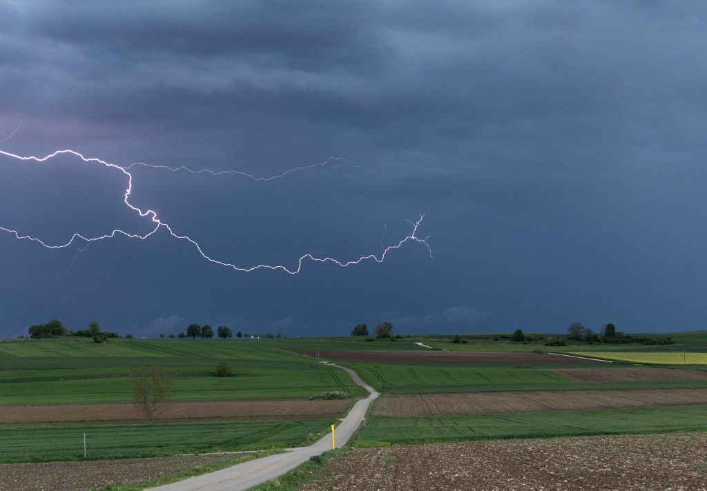 Klassische Crawler-Entladungen nach dem Durchzug eines MCS bei Ellwangen am 24.08.2023.