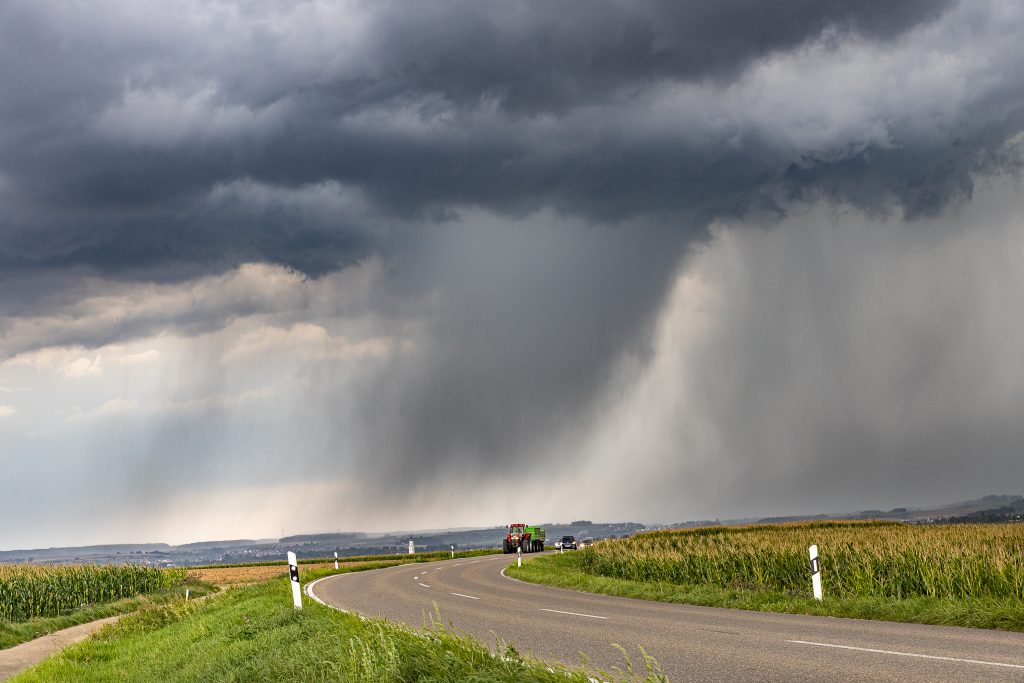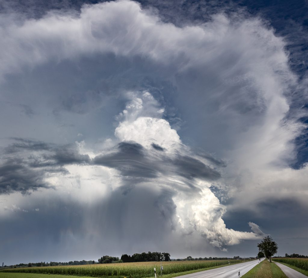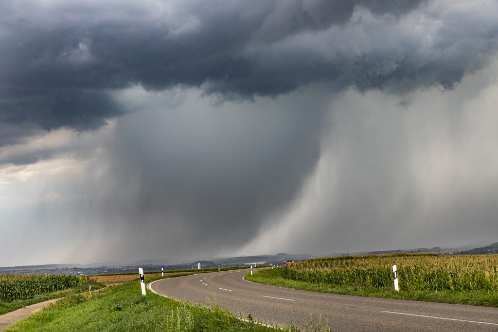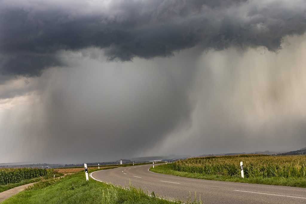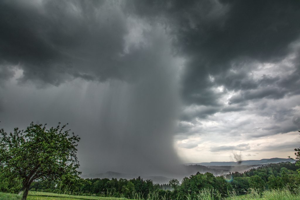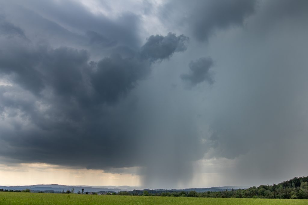 Ein Microburst (Wolkenbruch) ist nichts anderes als ein räumlich recht eng begrenzter Bereich in der kalte Niederschlagsluft aufgrund ihrer höheren Dichte als die Umgebungsluft, schnell zu Boden stürzt. In dem Fall-Prozess reißen die in der Luft mit nach unten fallenden Tropfen darunter schwebende Tropfen mit sich bis dieses Luftpaket durch die Wolke nach unten durchbricht und wie ein nasser Sack zu Boden fällt. Durch die vielen Tropfen in Verbindung mit der heruntergekühlten Niederschlagsluft wird außerdem ein starker Impuls induziert, welcher beim Auftreffen auf den Boden für enorme Windgeschwindigkeiten sorgt, da dort die Luft nichts anderes kann als in die Horizontale auszuweichen. In größerer Ausprägung spricht man bei diesem Phänomen von einem Downburst. Oft ist es genau dieser kinematische Vorgang der für große Schäden bei Gewittern, oder Superzellen sorgt und nicht ein Tornado. Ein Paradebeispiel für eine besonders starke Ausprägung dieses Phänomens ist der Downburst bei La Chaux-de-Fonds am 24.07.2023, welcher mit Winden jenseits der 200km/h für Schäden, wie bei einem F2 sorgte.