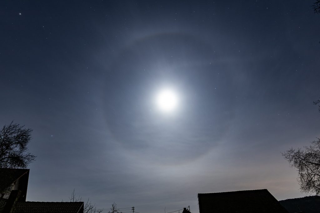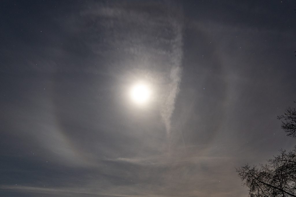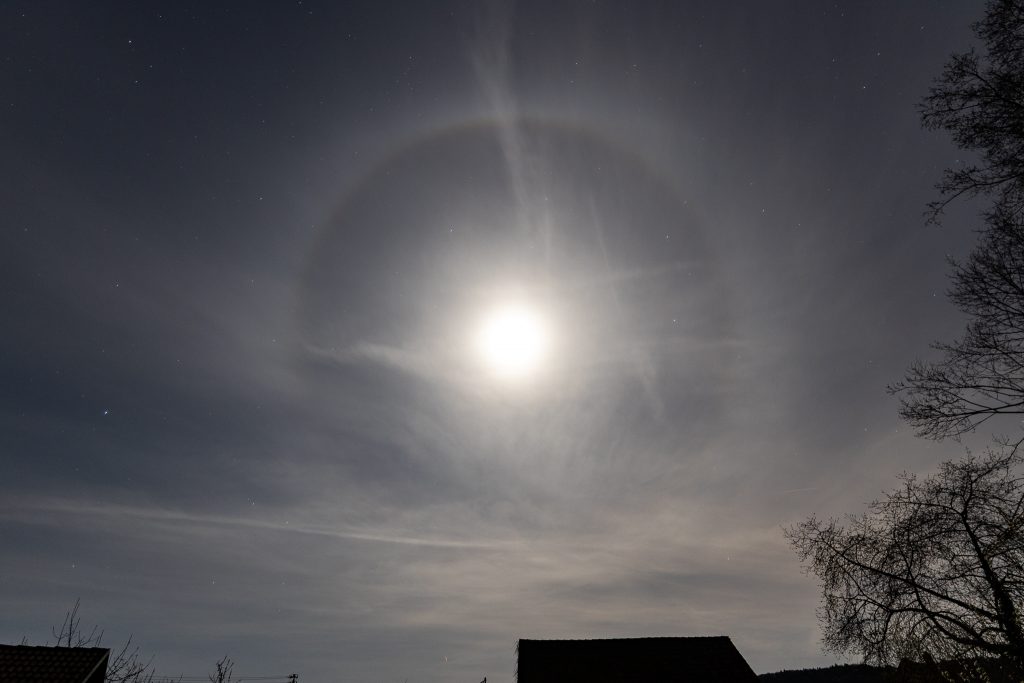 360° Halo bei 93% zunehmendem Mond an Cirrostratus-Schleier (10.04.2025)
